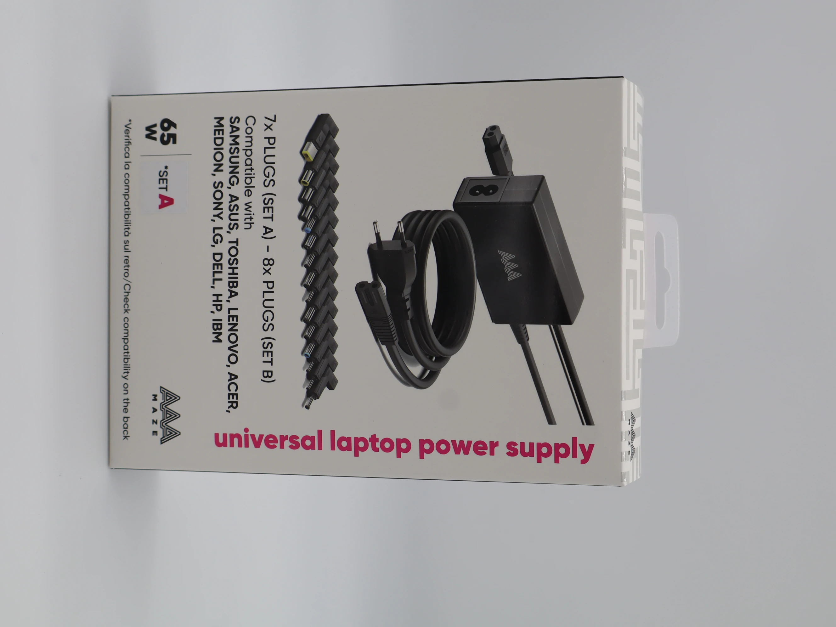L’alimentation universelle pour ordinateur portable AAMAZE 65W (kit A) est une solution de charge polyvalente compatible avec une large gamme d’appareils. Ce modèle spécifique prend en charge de nombreuses marques et modèles d’ordinateurs portables, en fournissant une alimentation stable et fiable de 65 W.